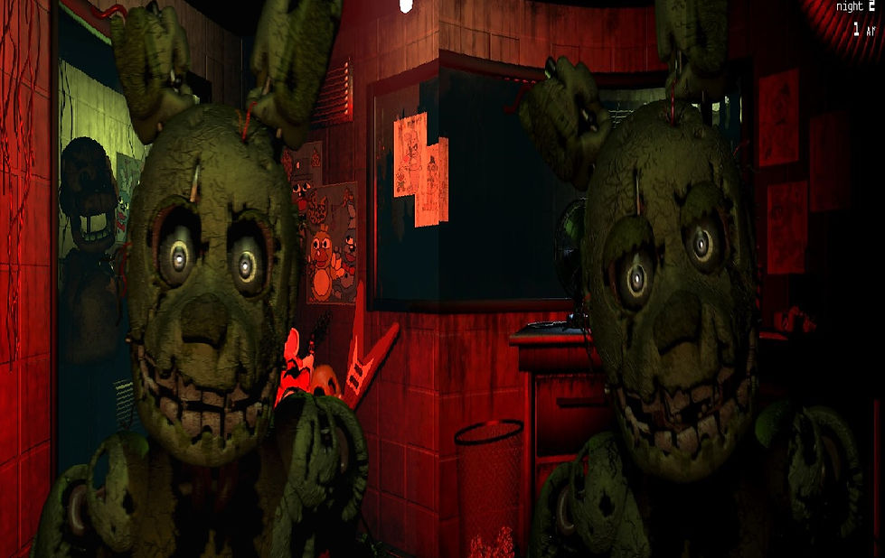 SpringTrap es un animatronico mezcla osea tiene partes de todos los animatronicos de Five Nigths At Freddy's pero Scott no a confirmado esto y el nombre de SpringTrap tiene su traducción Spring: Resortes Trap: Trampa y esto junto forma Trampa de Resortes y este en el juego tiene 2 Jumpscares 1: en la puerta 2: en la ventana pero los dos son diferentes al momento de hacerlo y este lo confundieron con Spring Bonnie pero Scott en la pagina de FNAFWorld.com muestra a un Spring Bonnie de diferente diseño y genero porque Scott separaria estas versiones y yo tengo una teoria compartida a traves de Sabino 69 que Spring Bonnie es una coneja Dorada inspirada en Bonnie y SpringTrap otro animatronico isnpirado en Bonnie y eswto tampoco es confirmado por Scott pero cuando sacen el nuevo juego oficial Five Nights At Freddy's World de pronto se resolvera esto.